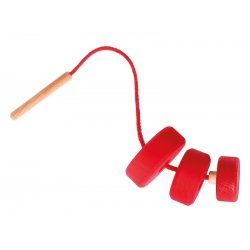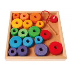 Les petits enfants trouveront aisément le trou et la grande aiguille en bois peut être facilement enfilée Cadre L = 22.5cm, disques en bois diamètre 3, 4, 5cm. Diamètre du trou 1.3cm. Aiguille en bois L = 8cm, fil 15cm.